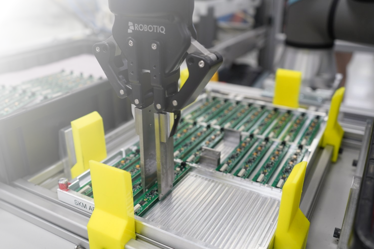 Sennheiser 使用 Robotiq 的 2F-85 Adaptive Gripper 處理 115 種不同的 PCB,測試單元數量增加了 33%。他們還使用 Robotiq Insights 來跟蹤日常生產指標,所得數據有助于證明在 2019 年夏季添加第二個優傲協作機器人是合理的。