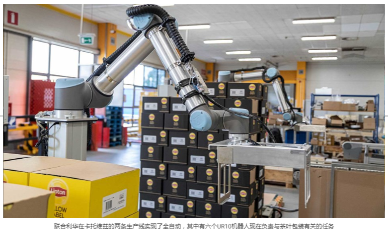 聯合利華(Unilever)是快速消費品(FMCG)行業中的全球最大公司之一,擁有約400個品牌,并在190多個國家/地區擁有業務。該公司在波蘭有四個生產工廠。其中之一,在卡托維茲(Katowice)鎮,專門用25公斤麻袋包裝運到工廠的茶。由六個UR10協作機器人將員工將待售產品包裝到盒子中的紙箱放在托盤上。優傲機器人的使用縮短了碼垛時間,優化了工作人體工程學,并減輕了員工執行最艱巨任務的負擔。