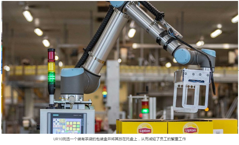 UR10協作機器人可達到1300毫米的范圍,有效載荷為10千克,已在聯合利華卡托維茲工廠進行了全面測試。在執行茶包裝的任務時,使用了真空吸盤。測試進行得非常好,以至于該公司決定部署UR10協作機器人。 第一個協作機器人由BiuroIn?ynierskieIEC公司實施,耗時約3周。UR協作機器人的經銷商Encon-Koester(更名為ProCobot)為Unilever自動化團隊提供了與機器人編程相關的基礎培訓。