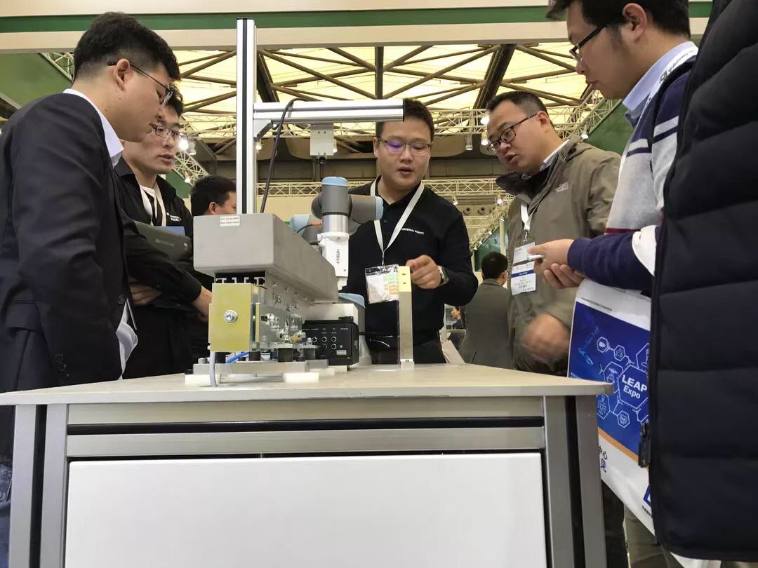 以產品檢測為例,在UR公司為一家3C生產廠商提供的方案中,使用1臺UR10機器人在產線上可對應8臺測試機進行上下料操作。通過機器人本體、夾爪和視覺識別系統的組合,機器人取料后將需要檢測的產品放到檢測臺進行檢測。每一臺檢測設備測試需要一定的時間,如果使用1臺UR機器人抓取并僅在1臺設備上進行檢測,適用效率太低。