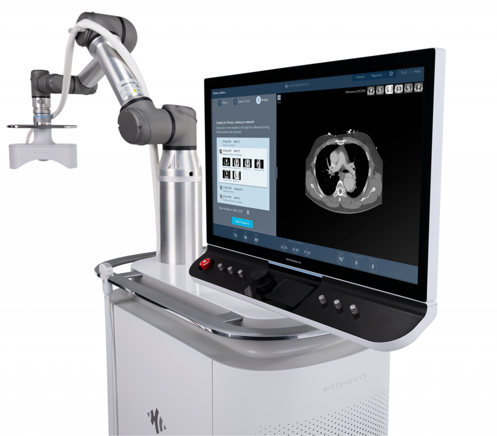 成立于2009年的HistoSonics推出的Edison就是我們今天打算介紹的圖像引導超聲治療機器人。它利用聚焦聲能產生壓力,液化亞細胞并破壞目標組織,從而治療病變組織和腫瘤細胞。Edison包括一個優傲機械臂、超聲探頭、影像顯示屏及控制面板,并且內置有微型計算機,負責影像計算和控制機械臂運動。它能將脈沖聲波能量輸送到人體內,而無需任何切口或針頭,并且能夠在亞細胞水平上破壞組織,而醫生通過設備顯示屏實時監測“氣泡云”和治療效果。