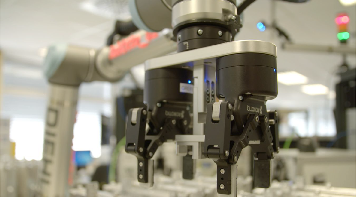 Diehl Aerospace為空客A350 XWB生產(chǎn)計算機系統(tǒng)。 由于這架飛機的訂單如火如荼,他們的質(zhì)量測試部門需要迅速增加容量。 無需實施昂貴的永久夜班,因為結(jié)合了兩個Robotiq 2F-85自適應夾爪,Robotiq FT 300力扭矩傳感器和Universal Robot UR10的自動化解決方案提供了高效且靈活的機器人單元。