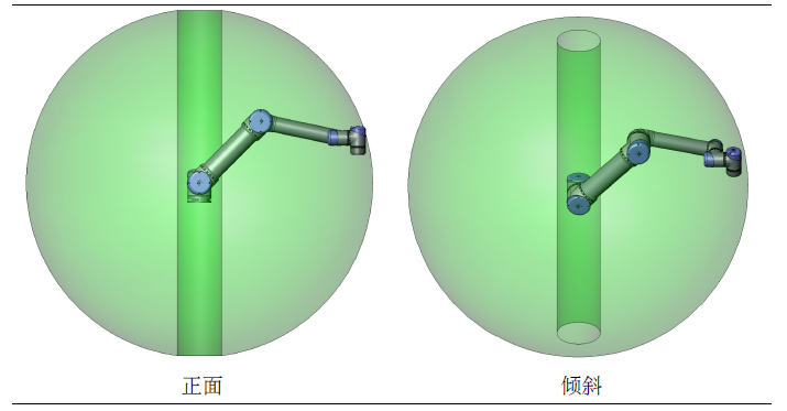 UR10 機器人的工作空間是指基座關節周圍1300 mm 范圍內的區域。