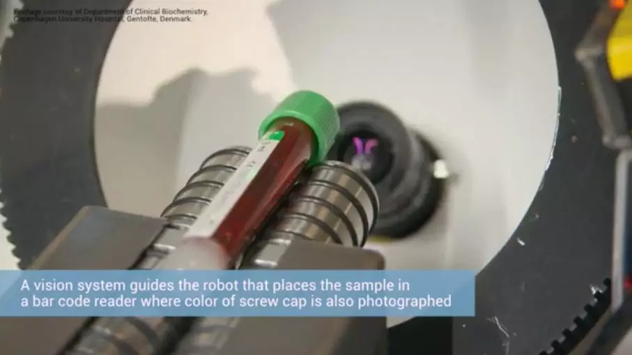 哥本哈根大學(xué)醫(yī)院采用兩臺UR5機器人,優(yōu)化血液樣本的處理和分類。借助這兩臺優(yōu)傲協(xié)作機器人,在送檢樣本增加20%的情況下,實驗室也能夠在1小時內(nèi)交付90%以上。
