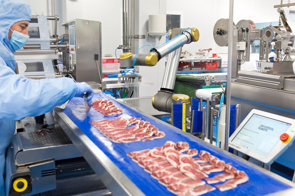 西班牙的C食品公司為了讓產品品質更加安全,生產效率更高,部署了UR10協作機器人用于固化肉類產品。